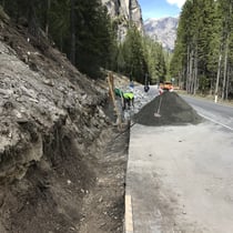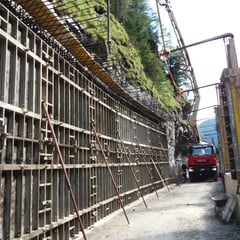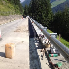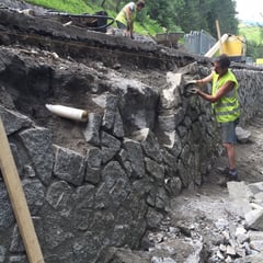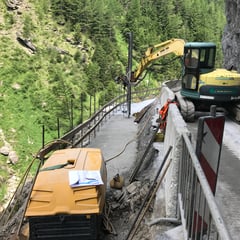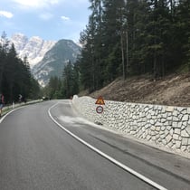 Abbruch und Wiederaufbau der bergseitigen Stützmauer und Anbringung von Steinschlagschutznetze zwischen km 20+300 und km 20+400 der SS244 Gadertal, 2018
