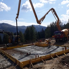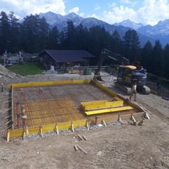 Wiederaufbau der Schönbergalm in Weissenbach Betonarbeiten, August 2018
